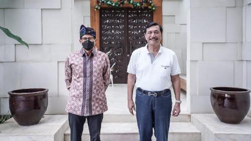 Menparekraf di sela kunjungan kerjanya di Bali, Minggu (27/12/2020), melakukan pertemuan dengan Menteri Koordinator Bidang Kemaritiman dan Investasi, Luhut Binsar Panjaitan.