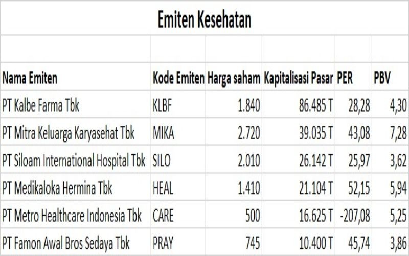 Dampak itu sangat terlihat dari melonjaknya harga-harga saham terhadap emiten yang tergabung dalam sektor kesehatan. Lompatan harga tersebut membuat valuasi sahamnya cukup mahal jika dibandingkan dengan sektor-sektor lainnya.