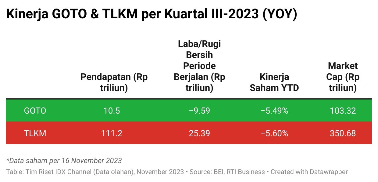 Meski laporan keuangan solid, saham TLKM masih tertekan sepanjang tahun ini. Saham TLKM mengalami penurunan 5,6 persen sepanjang tahun ini (YTD). Sementara kinerja GOTO juga tak kalah tertekan, dengan penurunan saham sebesar 5,49 YTD.