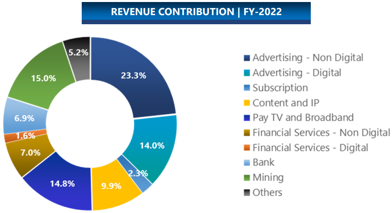 Kontributor utama pendapatan BHIT berasal dari iklan non digital, sebesar 23,3% dari total pendapatan konsolidasi, diikuti oleh pertambangan 15,0%, TV berbayar dan broadband 14,8%, iklan digital 14,0%, konten dan IP 9,9%, jasa keuangan non-digital 7,0%, bank 6,9%, lain-lain 5,2%, subscription 2,3%, dan jasa keuangan digital 1,6%.