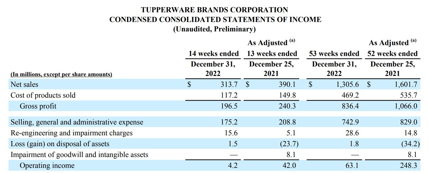 Dalam laporan keuangannya pada 2022, Tupperware melaporkan penurunan penjualan secara signifikan.