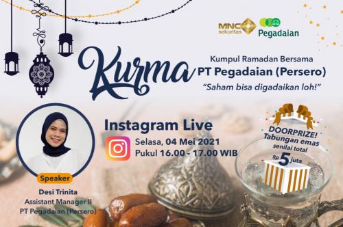 MNC Sekuritas menggelar program Instagram Live bertajuk “Kumpul Ramadhan bersama Pegadaian (KURMA): Saham Bisa Digadaikan Loh!” yang merupakan salah satu event online spesial Ramadhan MNC Sekuritas.