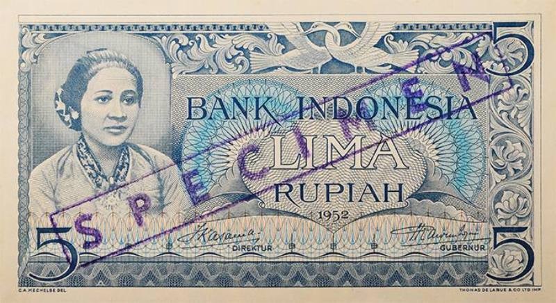 Pada 1953, Bank Indonesia untuk pertama kalinya mengedarkan uang kertas dengan tanda tahun 1952. Dilansir dari laman resmi Bank Indonesia, peredaran uang tersebut disiapkan bersamaan dengan penyusunan undang-undang bank sentral dan dicetak di percetakan Johan Enschede en Zonen, Imp., Belanda dan Thomas De La Rue & Co, Inggris.
