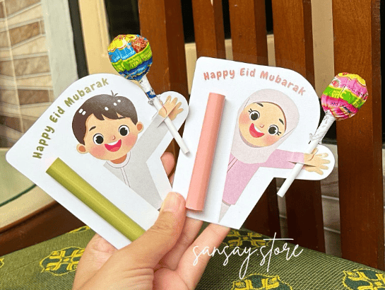 Amplop bentuk gulung juga unik dan berbeda dari yang lain. Amplop ini berbentuk karton bergambar sebagai background dan tabung kecil yang direkatkan ke permukaannya, di sinilah uang yang digulung dimasukkan. Unik, bukan?