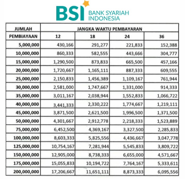 Dilansir dari berbagai sumber pada Senin (24/6/2024), IDX Channel telah merangkum tabel pinjaman bsi, sebagai berikut.