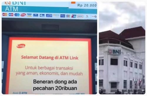 Pada dasarnya, tidak semua mesin ATM menyediakan pecahan uang Rp20 ribuan. Rata-rata, ATM menyediakan nominal pecahan uang Rp100 ribu dan Rp50 ribuan. Meski begitu, beberapa mesin ATM dilengkapi dengan pecahan Rp20 ribuan.