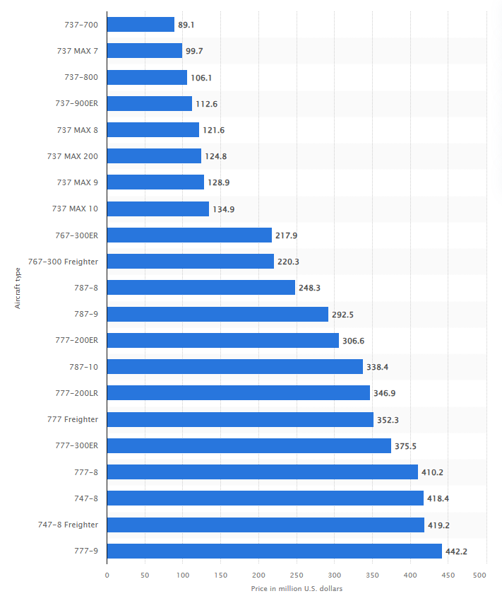 Nilai ini setara dengan Rp1,44 triliun sampai dengan Rp6,87 triliun. Namun diskon dapat berlaku jika pembelian dilakukan secara massal (bulk), ini dapat terjadi pada pembelian oleh maskapai penerbangan.