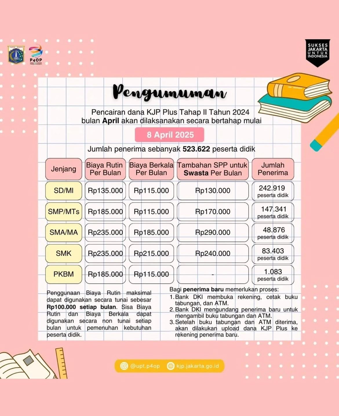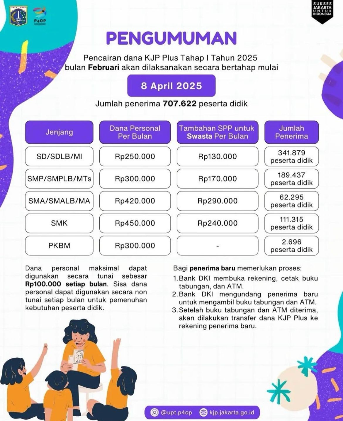 Informasi lengkap terkait besaran dana KJP yang diterima dapat dilihat di gambar di bawah ini: