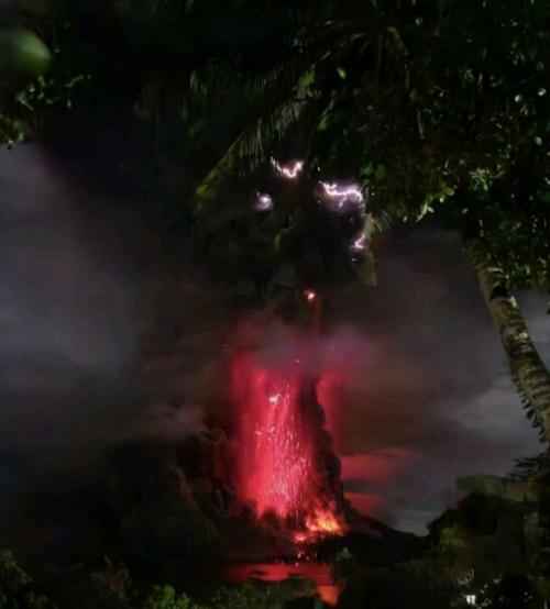 "Ketinggian kolom erupsi cenderung meningkat dengan material erupsi berupa abu disertai lontaran batuan pijar yang mencapai jarak sekitar 5 km di pulau Tagulandang," katanya.