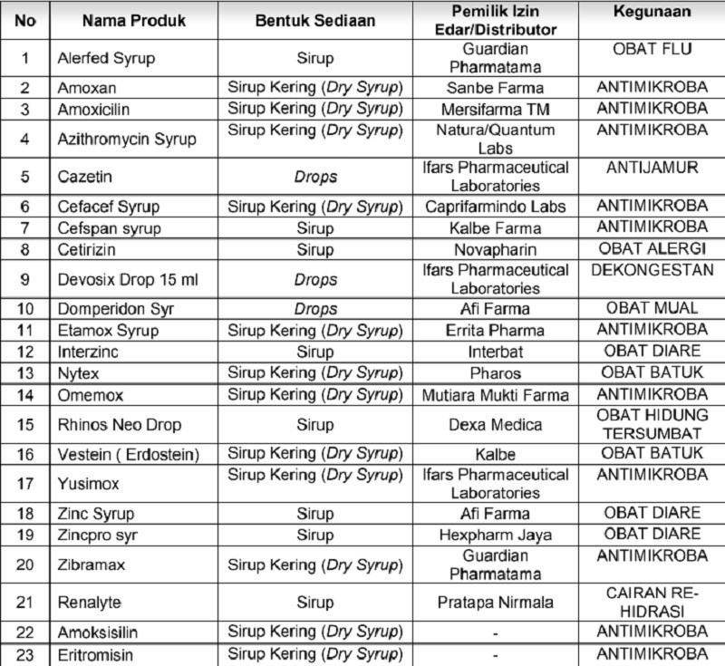 Berikut daftar 30 obat sirop yang aman digunakan versi BPOM: