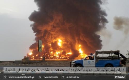 Seorang warga Al-Hudaydah menyebut, ledakan terdengar di kota selama serangan yang dilakukan oleh Israel. Pasukan Houthi dan petugas pemadam kebakaran terus berupaya memadamkan kobaran api.