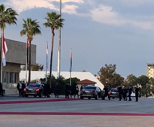 Setelah upacara selesai, Raja Abdullah II memeluk Prabowo untuk berjalan menuju mobil. Selanjutnya, Raja Abdullah II terlihat masuk melalui pintu kiri yang menjadi tempat sopir dan Prabowo masuk melalui pintu kanan mobil.