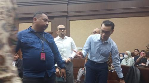 Momen itu terjadi saat para tersangka dihadirkan di dalam persidangan pembacaan dakwaan, Kamis (9/10/3025) di Pengadilan Negeri Jakarta Pusat.