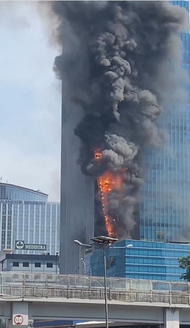 Kebakaran terpantau berasal dari lantai 7 gedung bertingkat tersebut. Pemadam kebakaran (Damkar) baru menerima informasi peristiwa itu sekitar pukul 10.00 WIB, dan tiba di lokasi 10.10 Wib.