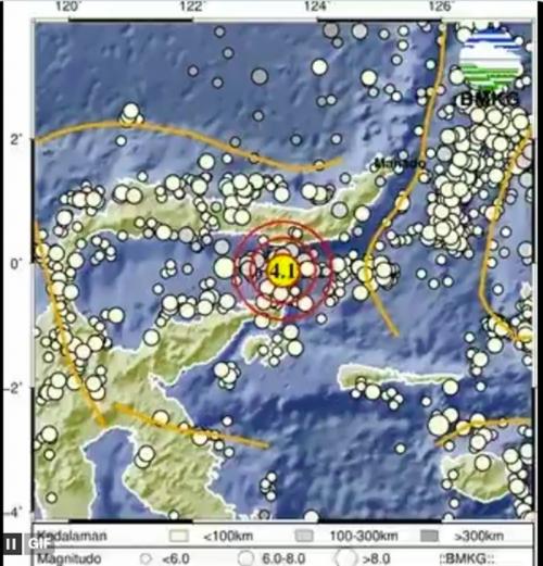 Sementara itu, pusat gempa berada di 80 km Tenggara Bone Bolango Gorontalo pada koordinat 0.12 Lintang Selatan-123.45 Bujur Timur.