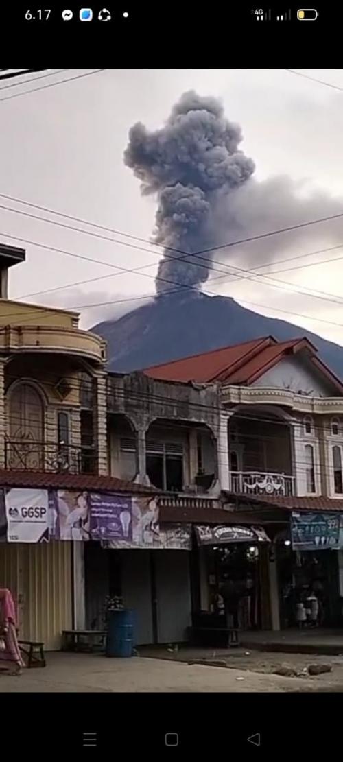 "Ya sore ini sekitar pukul 18.10 kembali erupsi, bahkan lebih pekat dan kolom abu lebih tinggi dari sebelumnya. Tinggi kolom abu teramati ± 1.200 m di atas puncak (± 5.005 m di atas permukaan laut).”