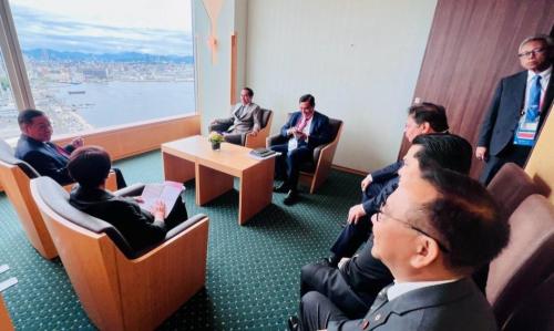 Kepala Negara mengawali kegiatannya dengan melakukan pertemuan bilateral bersama Perdana Menteri (PM) Jepang Fumio Kishida di Grand Prince Hotel Hiroshima.