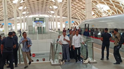 Presiden tiba di stasiun didampingi oleh Menteri Koordinator Bidang Kemaritan dan Investasi Luhut Binsar Pandjaitan, Sekretaris Kabinet Pramono Anung, Menteri Perhubungan Budi Karya Samadi, Menteri ATR/BPN Hadi Tjahjanto, Pj Gubernur Jawa Barat Bey Machmudin serta Direktur Utama KAI Didiek Hartantyo.