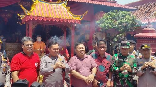 Di sana, Kapolda langsung disambut oleh para pengurus klenteng tersebut dan langsung berkeliling sekitar lokasi.
