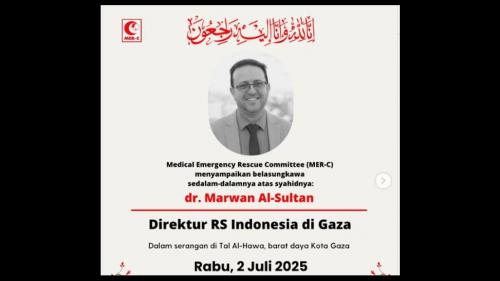 Sementara itu, kabar duka mengenai wafatnya Direktur RS Indonesia di Gaza dr Marwan Al Sultan dibagikan relawan lokal MER-C lewat akun media sosial Instagram MER-C Indonesia.