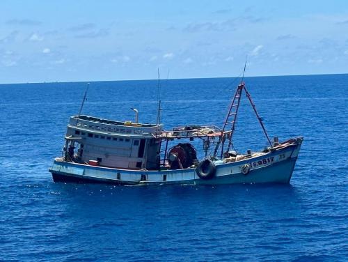 Diduga kapal TG 9817 TS melakukan kegiatan penangkapan ikan di Perairan ZEEI Laut Natuna Utara tanpa dilengkapi dokumen perizinan yang berlaku.