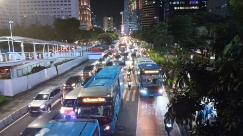 Masyarakat pengguna sepeda motor dan mobil saling klakson untuk mencari celah padatnya jalanan. Kemacetan parah juga terjadi di sepanjang jalan dari arah Senayan menuju Hotel Indonesia (HI)