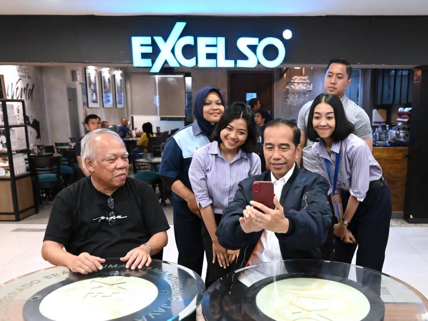 Jokowi kemudian menuju lantai dua pusat perbelanjaan tersebut dan mampir ke salah satu kedai kopi lokal. Bersama kedua menterinya, Presiden pun duduk semeja dan memesan makanan dan minuman.