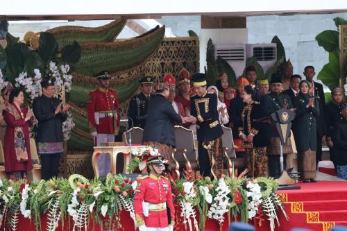 Jokowi juga tampak menyalami Prabowo usai memimpin upacara peringatan detik-detik proklamasi di IKN.