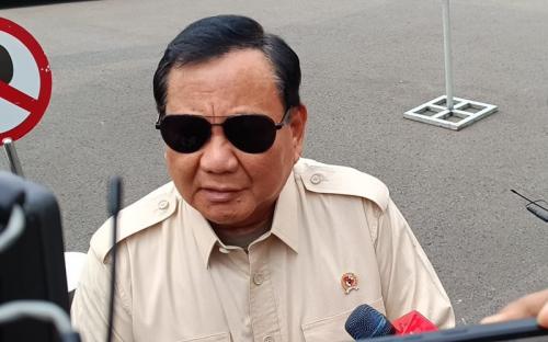 Pantauan di lokasi, Prabowo tiba bersama ajudannya Mayoritas Teddy Indra Wijaya sekitar pukul 14.50 WIB. Tampak Presiden terpilih tersebut mengenakan baju setelan berwarna krem dan kacamata hitam.
