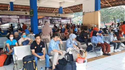 Meski belum terlihat padat, namun suasana di terminal itu cukup ramai dengan antrean pemudik yang akan naik bus antar kota dan provinsi.