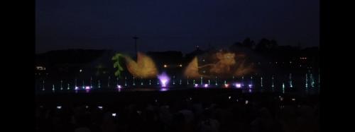 Pertunjukan tersebut berupa atraksi air mancur yang dipadukan dengan lampu warna-warni, laser, dan drone show yang menampilkan beberapa dongeng nusantara, salah satunya Si Kancil.