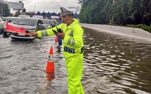 “Kami laporkan dari KM 26+400 Tol Sedyatmo yang mengarah Bandara Soekarno Hatta masih terdapat genangan air dengan ketinggian kurang lebih 40-50 cm baik yang mengarah Bandara maupun ke Jakarta," kata anggota TMC Polda Metro Jaya melalui video yang diunggah di laman TMC Polda Metro Jaya, Kamis (30/1/2025).