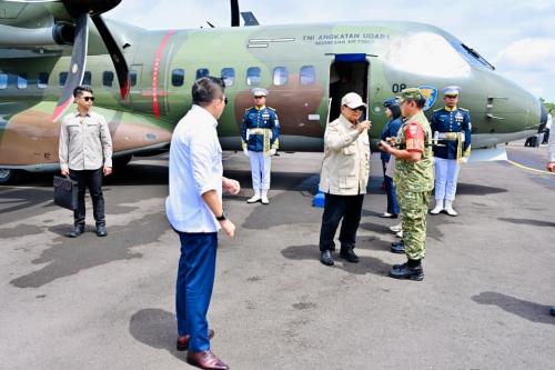 Sementara itu, pesawat yang membawa Presiden Prabowo beserta rombongan terbatas tiba di Bandar Udara Tunggul Wulung, Kabupaten Cilacap, pukul 12.07 WIB.