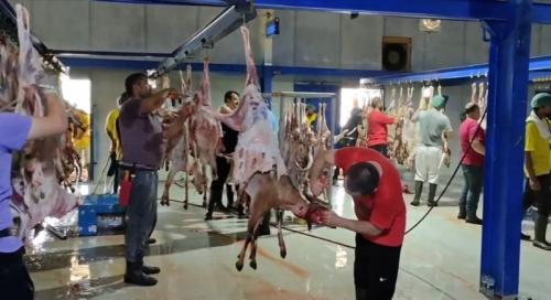 "Kami saat ini ada di masta RPH Alokishia di mana daging-daging dam petugas haji dan jamaah disembelih di sini. Sekarang sedang dikemas isian satu dus ukuran 3,5 Kg dan akan diprediksi mencapai 6.000 kardus lebih," kata Khalilurrahman, Jumat (14/7/2023).