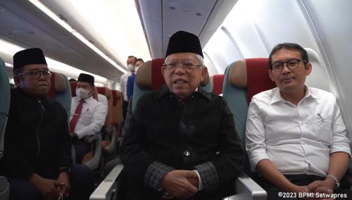 Saat di atas pesawat dalam penerbangan ke tanah air, Wapres sempat berbincang-bincang tentang dari kunjungannya ke Osaka dan Kyoto. Diketahui, Wapres menempuh perjalanan selama kurang lebih tujuh jam, dan tiba di Bandara Internasional Soekarno Hatta pada Kamis (9/3/2023) pukul 16.20 WIB.