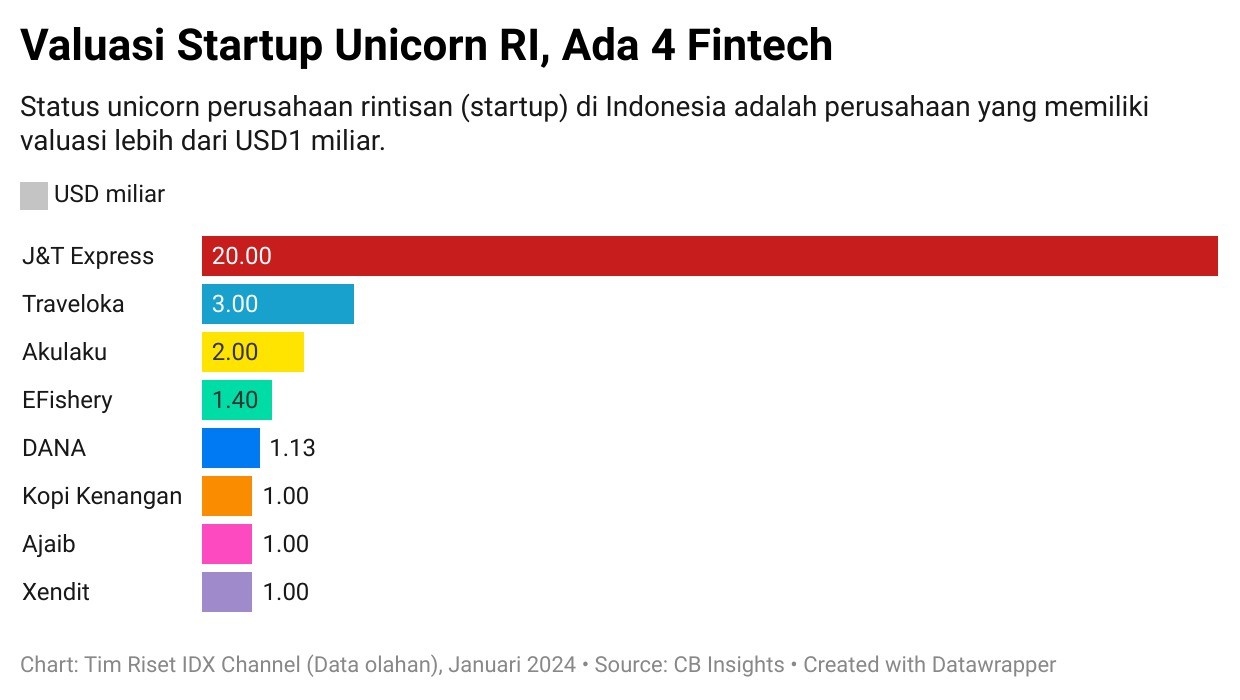 Hingga Oktober 2023, CB Insights melaporkan terdapat delapam perusahaan rintisan di Indonesia yang bergelar unicorn alias memiliki valuasi lebih dari USD1 miliar.
